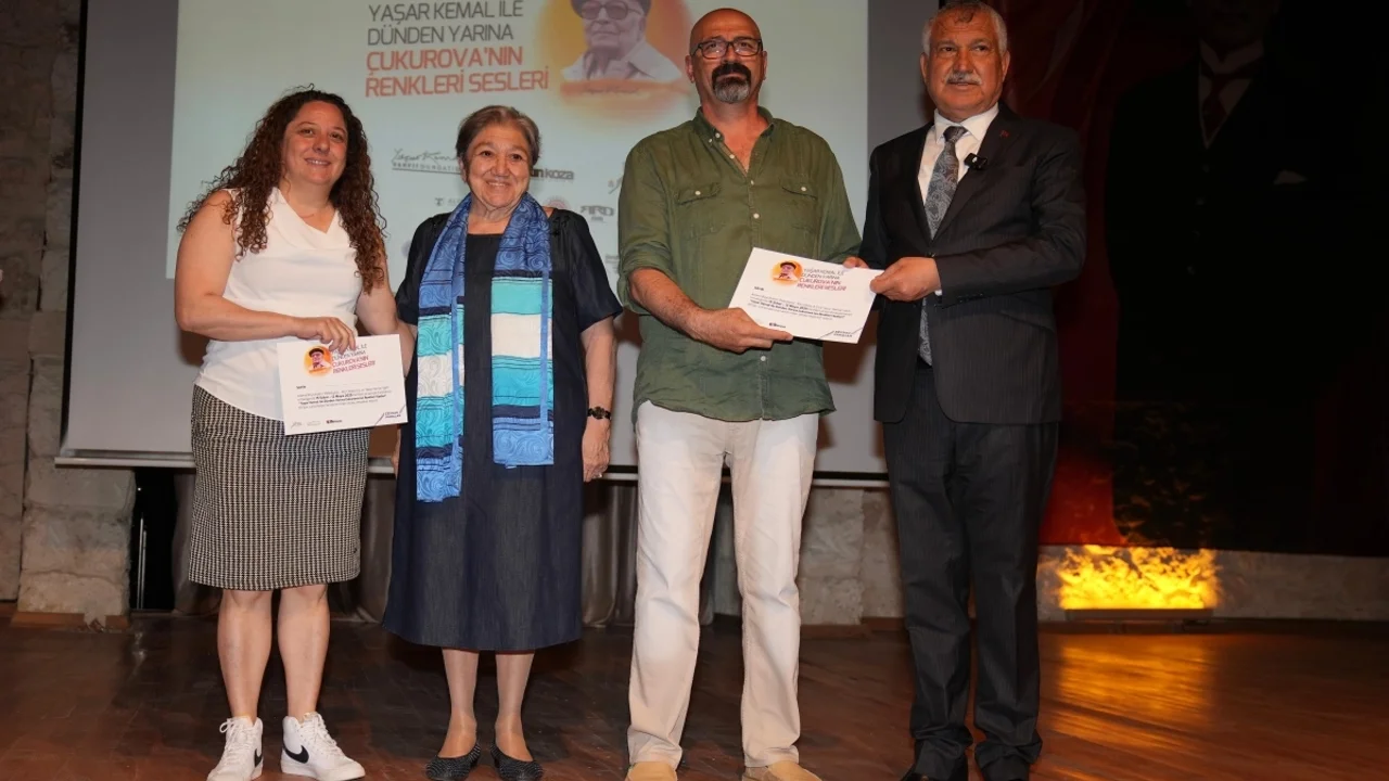Adana Büyükşehir Belediyesi, Altın Koza A.Ş. ve Yaşar Kemal Vakfı birlikteliğiyle düzenlenen Yaşar Kemal Sanat Günleri Kapanış Töreni; Adana Büyükşehir Belediye Başkanı Zeydan Karalar ve Yaşar Kemal’in eşi Ayşe Semiha Baban’ın katılımıyla Seyhan Çırçır Sanat Merkezi’nde yapıldı.ADANA (İGFA) - Başta Türkiye Belediyeler Birliği Başkan Vekili ve Adana Büyükşehir Belediye Başkanı Zeydan Karalar olmak üzere, İl Milli Eğitim Müdürlüğü yöneticileri ile katkı sağlayan herkese teşekkür ederek sözlerine başlayan Ayşe Semiha Baban şunları söyledi: “Bir birikimin yoğrularak, inceltilerek, birbirine besleyerek zenginleştiğini, bir çok tarihi etkenin de bu işe dahil olmasıyla, müthiş bir kültürel bellek oluştuğunu, hayranlıkla ve bir kez daha şaşırarak gördüm. Yaşadığınız yerin ne kadar zengin, ne kadar derinliği olan ve size yarınlar için nasıl büyük güç verecek bir birikim taşıdığını her zaman göremeyebiliyor insan. Ama işte bu ekip böyle bir yolculuğu devam ettiriyor. Yaratıcı düşünme konusunda buradaki herkesin yolu açık olsun.”