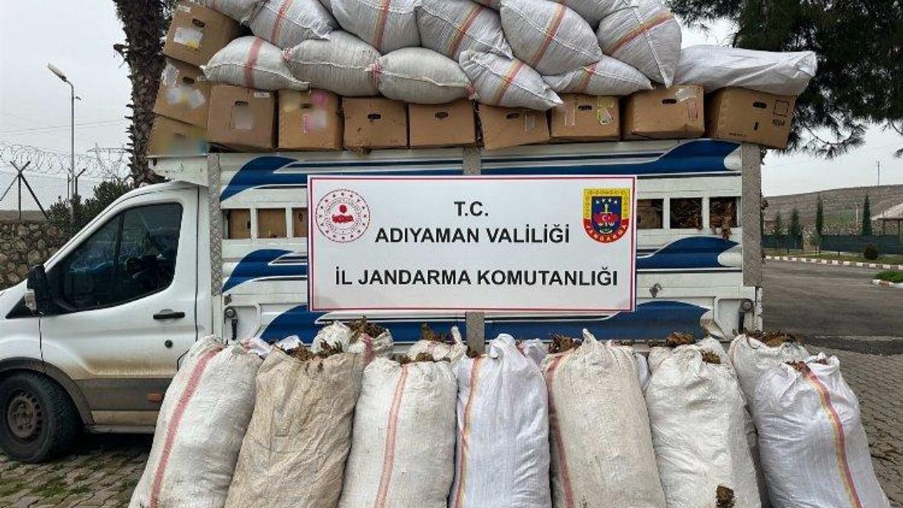 Araçta yapılan aramada il dışından Adıyaman'a getirildiği tespit edilen 3 ton 710 kilogram kaçak yaprak tütün (piyasa değeri yaklaşık 300 bin TL) ele geçirildi.