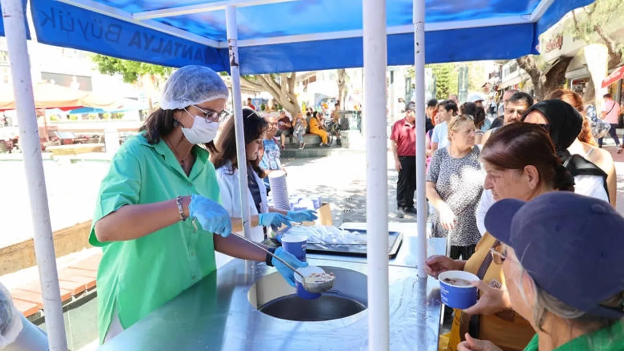 Antalya Büyükşehir Belediyesi, Muharrem ayı vesilesiyle gelenekselleşen aşure ikramlarına başladı. Muratpaşa Kapalıyol ve Alanya’da ikram edilen aşureye vatandaşlar yoğun ilgi gösterdi.ANTALYA (İGFA) - Antalya Büyükşehir Belediyesi’nin her yıl düzenlediği ve geleneksel hale getirdiği aşure ikramı bu yıl da sürdürülüyor. Antalya Büyükşehir Belediyesi Sosyal Hizmetler Dairesi Başkanlığı’na bağlı aşevlerinde özenle hazırlanan aşurelerin ilk dağıtım noktaları, merkezde Kapalıyol ve Alanya’da Atatürk Anıtı önü oldu. Kurulan dağıtım stantlarında Kapalıyol’da 3 bin, Alanya’da ise 2 bin kişiye aşure ikram edildi. Aşureye vatandaşların ilgisi yoğun oldu. Aşureyi tadan vatandaşlar ve yabancı ziyaretçiler, bu kadim lezzete tam not verirken memnuniyetlerini de dile getirdi.
