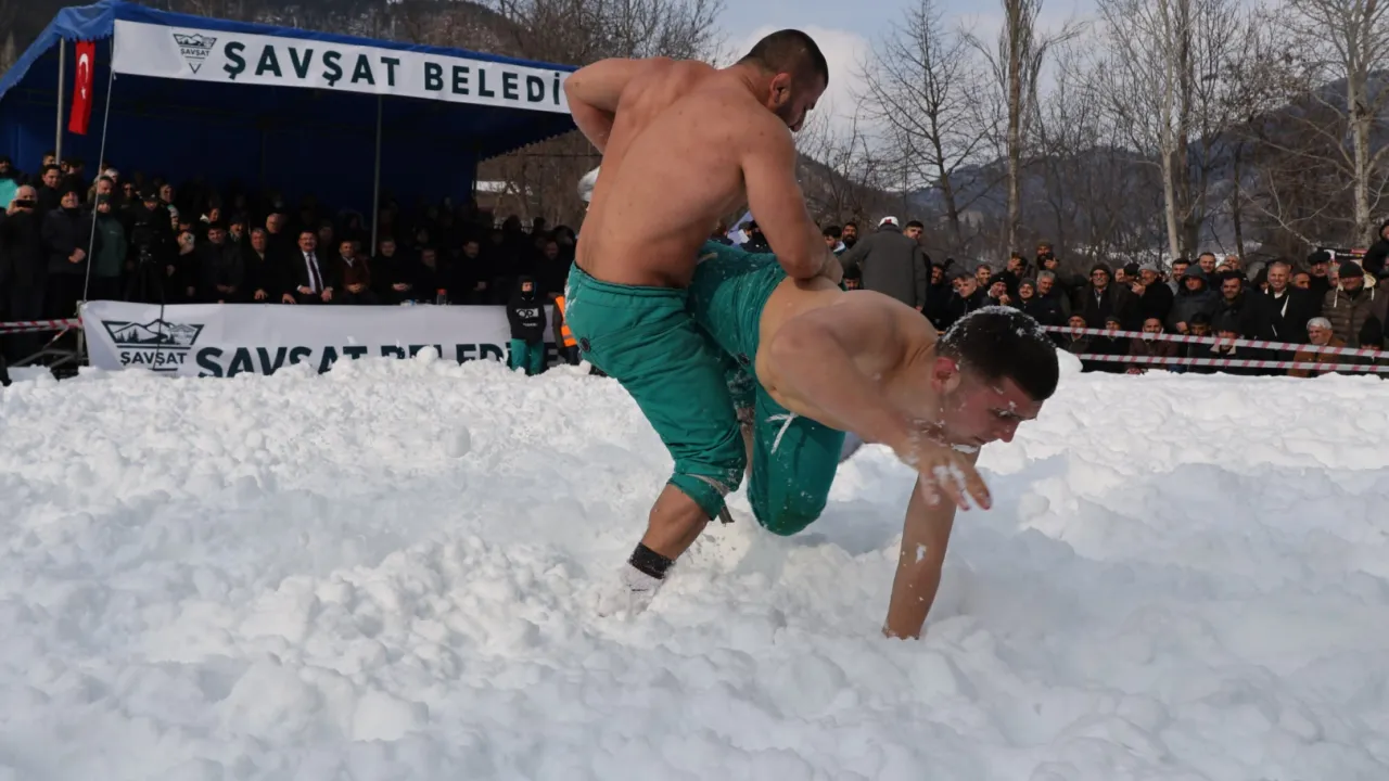 Artvin'in Şavşat ilçesine bağlı Veliköy'de bu yıl 28'incisi düzenlenen "Kar Üstü Karakucak Güreşleri" yapıldı.Bayram SARAYOĞLU / ARTVİN (İGFA) - Artvin Valiliği'nin koordinesinde Şavşat Kaymakamlığı ve Şavşat Belediyesi'nin katkılarıyla Veliköy Muhtarlığı ve Veliköy Kültür ve Dayanışma Derneği iş birliğiyle bin 370 rakımlı köyde düzenlenen güreşlere Artvin, Tokat, Erzurum, Samsun ve Çorum'dan 80 sporcu katıldı.