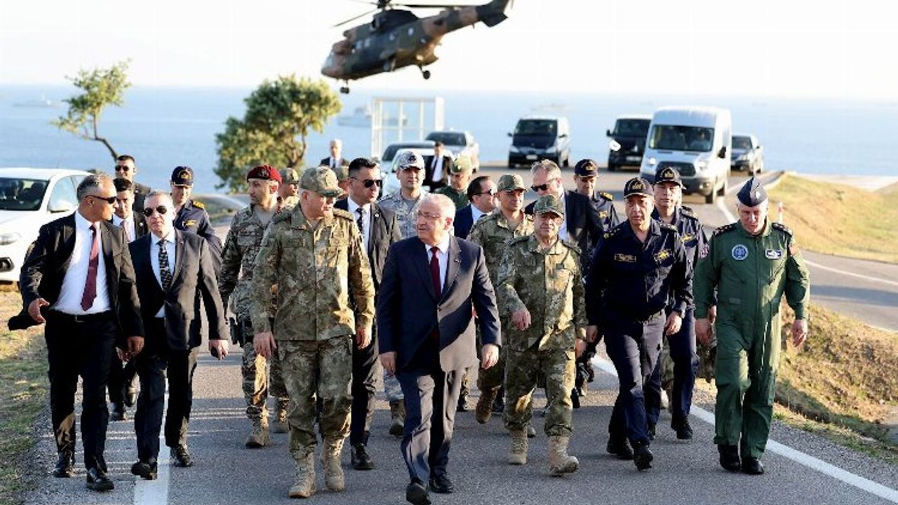 İZMİR (İGFA) - Millî Savunma Bakanı Yaşar Güler, beraberinde Genelkurmay Başkanı Orgeneral Metin Gürak, Deniz Kuvvetleri Komutanı Oramiral Ercüment Tatlıoğlu, Kara Kuvvetleri Komutanı Orgeneral Selçuk Bayraktaroğlu ve Hava Kuvvetleri Komutanı Orgeneral Ziya Cemal Kadıoğlu ile gittiği İzmir’de 29-30 Mayıs tarihlerinde gerçekleştirilecek EFES-2024 Tatbikatı’nın Seçkin Gözlemci Günü hazırlıklarını yerinde denetledi.