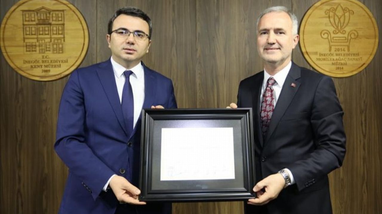 Mahalli İdareler Seçimlerinde yeni İnegöl Belediye Başkanı seçilen Alper Taban, düzenlenen törenle mazbatasını aldı.BURSA (İGFA) - 31 Mart Pazar günü gerçekleştirilen Mahalli İdareler Seçimlerine Cumhur İttifakı Adayı olarak katılan Alper Taban, 166 bin 255 seçmenin 68 bin 406’sının oyunu alarak %43,33 ile yeniden İnegöl Belediye Başkanı seçildi. Seçimin kesin sonuçlarının belli olmasının ardından Başkan Taban, bugün İnegöl Kent Müzesinde düzenlenen törenle mazbatasını aldı. Törende İnegöl Belediye Meclis Üyelerinin de mazbataları teslim edildi.