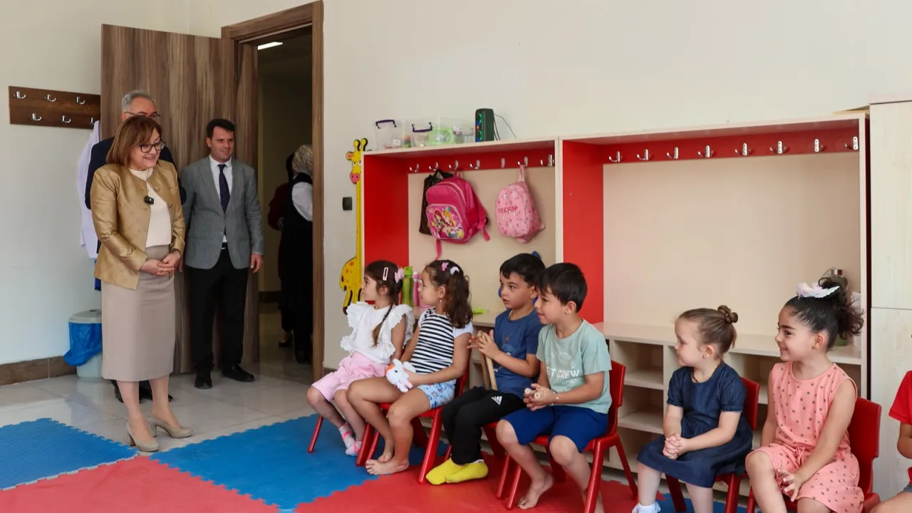 Gaziantep Büyükşehir Belediye Başkanı Fatma Şahin, yaz okullarından faydalanan çocukları ziyarette bulundu.GAZİANTEP (İGFA) - Gaziantep Büyükşehir Belediyesi Sanat ve Meslek Eğitim Kursları (GASMEK) Fatih Sultan Mehmet Eğitim Akademisinde öğrencilerle bir araya gelen Başkan Fatma Şahin yaz okulunun işleyişi, eğitimler ve yapılan aktiviteler hakkında bilgi aldı.