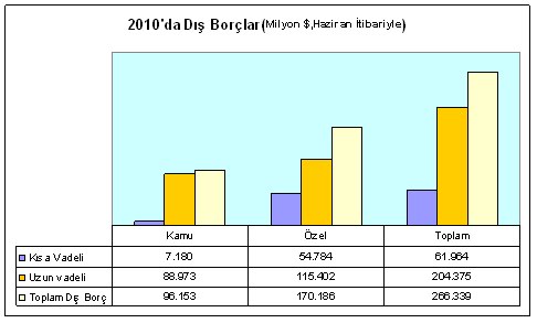 Özel sektörün 55 milyar dolara çıkan kısa vadeli borçlarının, yüzde 55’i bankaların, geri kalanı özel firmaların borçları. Yine özel sektöre ait 115 milyar dolarlık uzun vadeli borçların 63 milyar doları yabancı bankalardan, 30 milyar doları, Türk bankaların yabancı şubelerinden gerçekleştirilmiş.