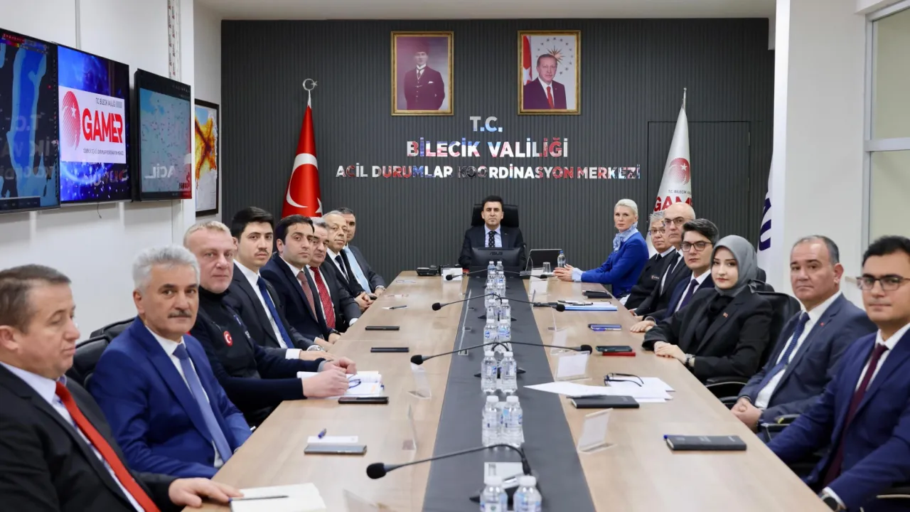 Bilecik’te Güvenlik ve Acil Durumlar Koordinasyon Merkezi (GAMER) İzleme, Değerlendirme ve Koordinasyon Kurulu Toplantısı, Vali Şefik Aygöl başkanlığında gerçekleştirildi.Pazaryeri Gündem / BİLECİK (İGFA) - Toplantıya, Vali Yardımcıları, Kaymakamlar, Bilecik Belediye Başkanı, İl Jandarma Komutan Yardımcısı, İl Emniyet Müdür Yardımcısı ve kurum müdürleri katıldı.