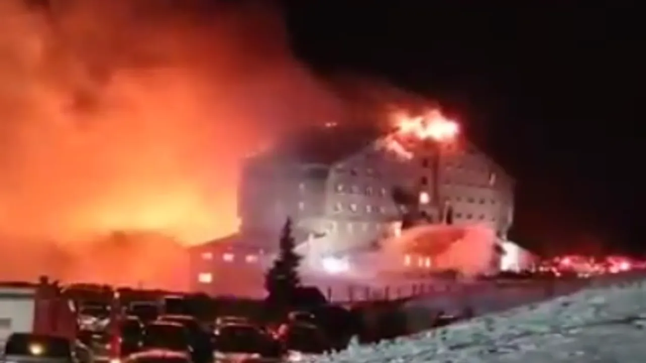 Bolu Kartalkaya Kayak Merkezi'ndeki bir otelde gece saatlerinde yangın çıktı. Alevler kısa sürede tüm oteli sararken ihbar üzerine bölgeye çok sayıda ekip sevk edildi. İlk belirlemelere göre yangında 10 kişi hayatını kaybederken 32 kişi de yaralandı.BOLU (İGFA) - Bolu Kartalkaya Kayak Merkezi'ndeki bir otelde saat 03:27 sıralarında yangın çıktı.