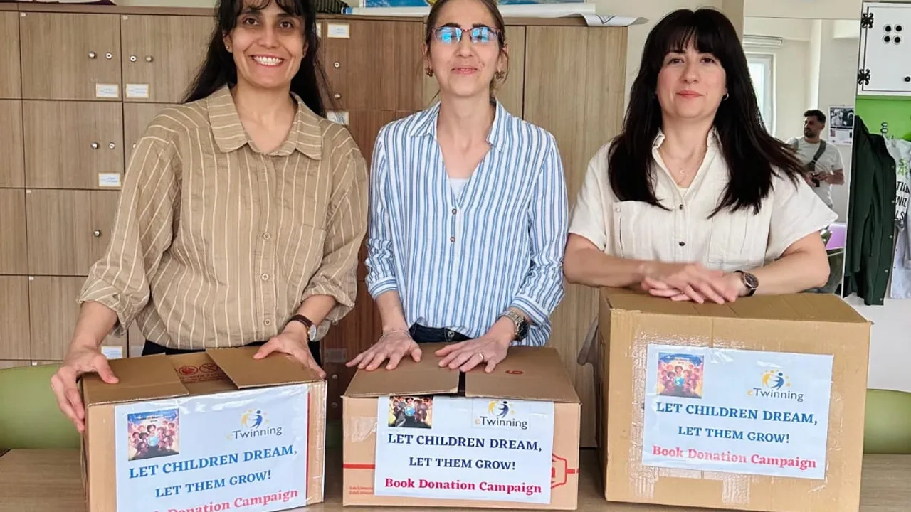 Bursa'nın Gemlik ilçesinde üç öğretmenin öncülük ettiği eTwinning projesi kapsamında öğrenciler, Diyarbakır Ergani’deki Alitaş İlkokulu’na kitaplık oluşturdu. Proje, paylaşma ve yardımlaşma duygularını pekiştirdi.Tarık ŞEKER / BURSA (İGFA) - Gemlik’te, Şehit Öğretmen Etem Yaşar İlkokulu’ndan Türkan Ramazan, 11 Eylül İlkokulu’ndan Esra Nur Yüksel ve Gemlik Anadolu İmam Hatip Lisesi’nden Hülya Bilgiç’in ortaklaşa yürüttüğü “Let Children Dream, Let Them Grow!” eTwinning projesi kapsamında anlamlı bir adım atıldı.