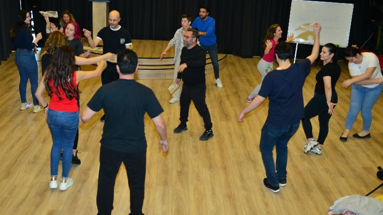 Önümüzdeki ay ilk kez perde açacak oyun için önce sahneye ısınan kursiyerler, ardından tekstleri ellerine alıp rol dağılımına başladı. Oldukça iddialı sürpriz oyun için çok heyecanlı olan kursiyerler, prömiyer gecesini adeta iple çekiyor.