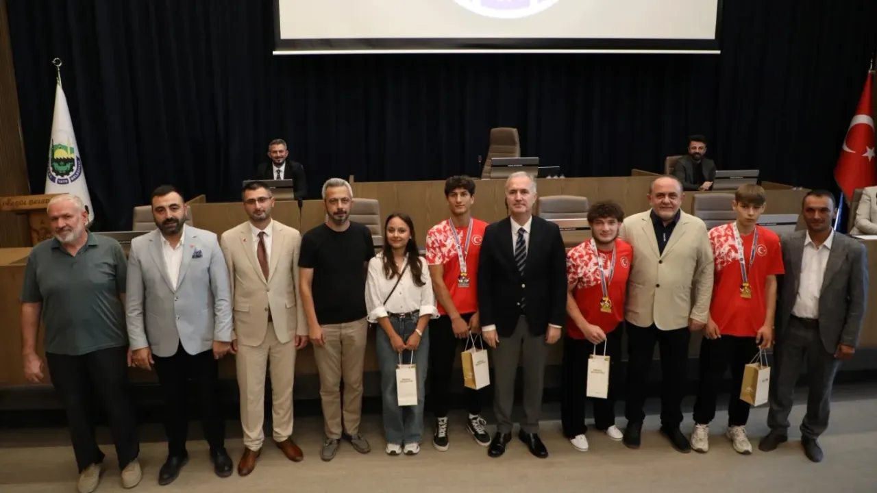 Romanya’da yapılan Avrupa Bilek Güreşi Şampiyonasında derece elde eden İnegöllü sporcular ile Ege Üniversitesi Türk Musikisi Devlet Konservatuvarı Türk Halk Oyunları Bölümü’nü 1’incilikle kazanan İnegöllü öğrenci, İnegöl Belediyesi’nin Eylül ayı meclis toplantısında misafir edildi.BURSA (İGFA) - İnegöl Belediyesi şehrin adını temsil eden ve başarılar kazanan öğrenci ve sporcuları belediye meclisinde misafir ederek ödüllendirmeye ve onur etmeye devam ediyor. Eylül ayı meclis toplantısında 4 başarılı genç mecliste konuk edilerek hediye takdimi yapıldı.