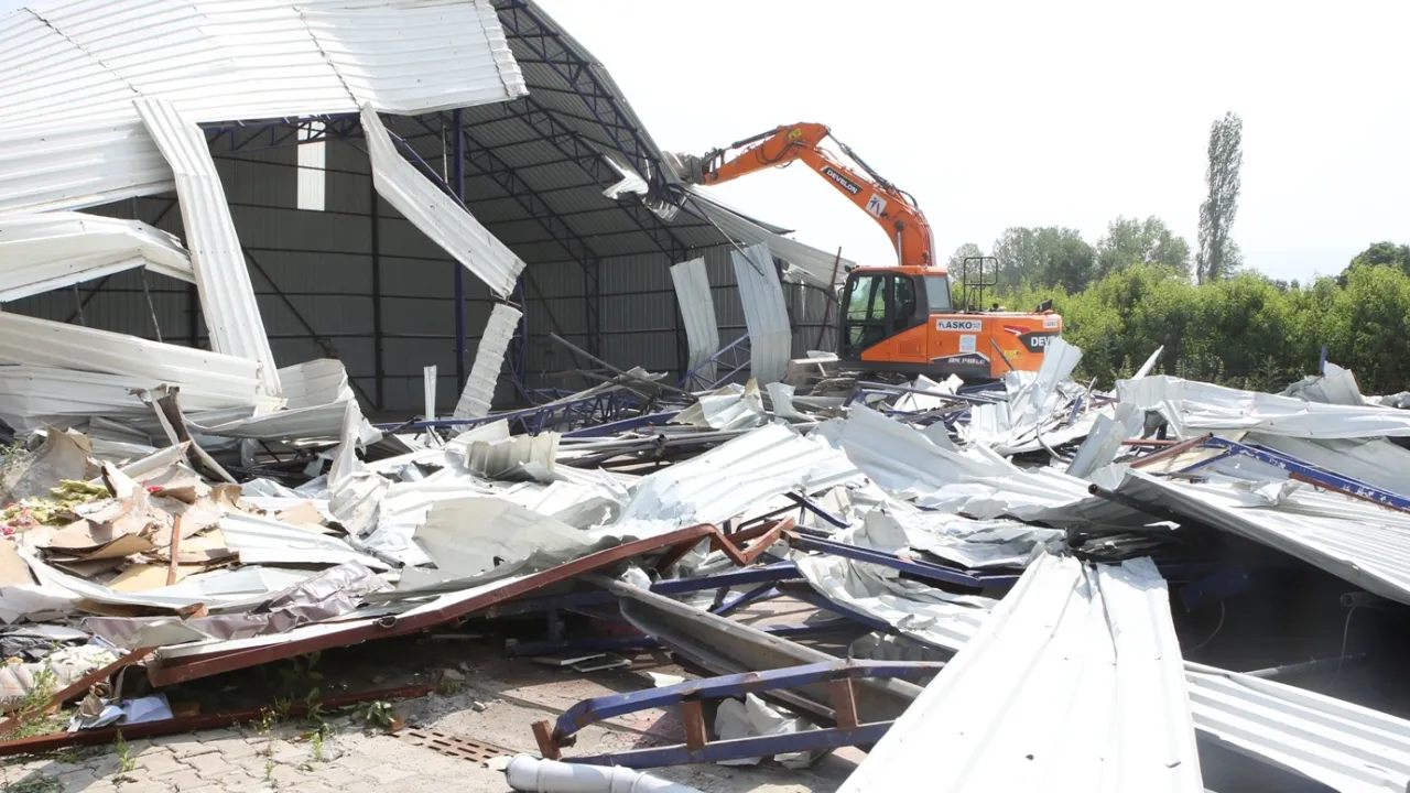 Daha sonra gerekli güvenlik önlemleri alınarak, yıkım işlemine geçildi. İş makinesinin kontrollü çalışmalarıyla Tahtalı Mahallesi’ndeki 600 metrekarelik iş yeri kullanılamaz hale getirildi.