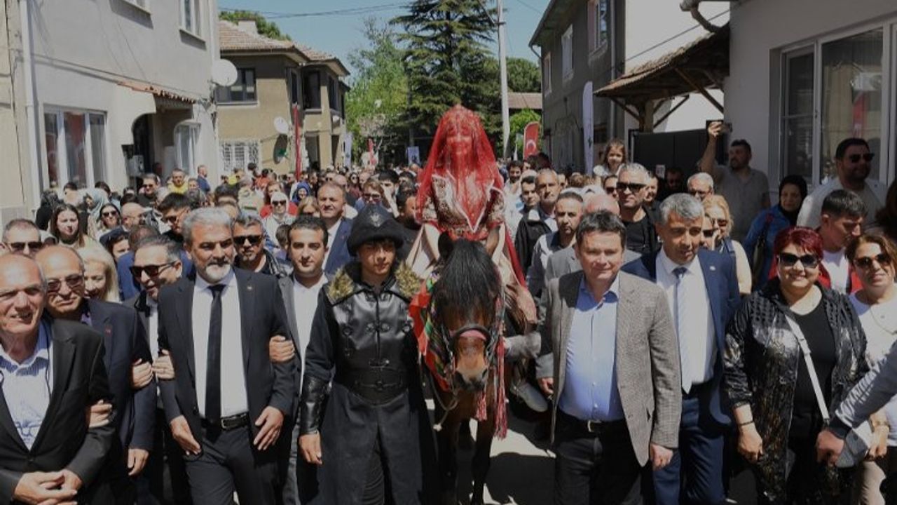 Bursa'da Osmangazi Belediyesi tarafından bu yıl 19’uncusu düzenlenen Osman Gazi’yi Anma ve Bursa’nın Fethi Şenlikleri kapsamında düzenlenen köy düğünü etkinliğine, Armutköy ve Dereçavuş Mahalleleri ev sahipliği yaptı.BURSA (İGFA) - Osmangazi Belediye Başkanı Erkan Aydın, davul ve zurnalar eşliğinde gelini Armutköy mahallesindeki evinden çıkartarak ata bindirdi.