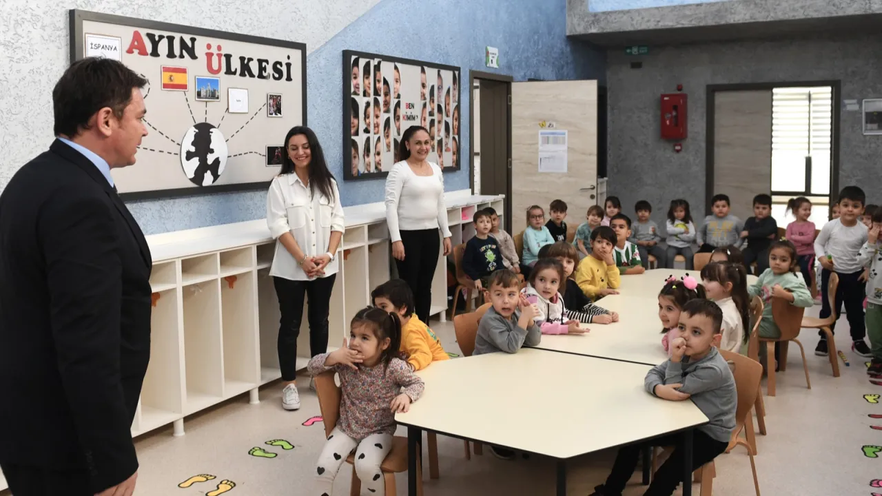Bursa'da Osmangazi Belediye Başkanı Erkan Aydın, Ayça Azak Gündüz Bakımevi ve Çocuk Kreşi’nde eğitim gören çocukların karne heyecanına ortak oldu.BURSA (İGFA) - Osmangazi Belediyesi’nin çağdaş ve nitelikli bir eğitim alarak, geleceğe güven ve umutla bakan çocukların yetiştirilmesi amacıyla hizmete açtığı Ayça Azak Gündüz Bakımevi ve Çocuk Kreşi’nde eğitim gören 52 çocuk, karne heyecanını yaşadı.