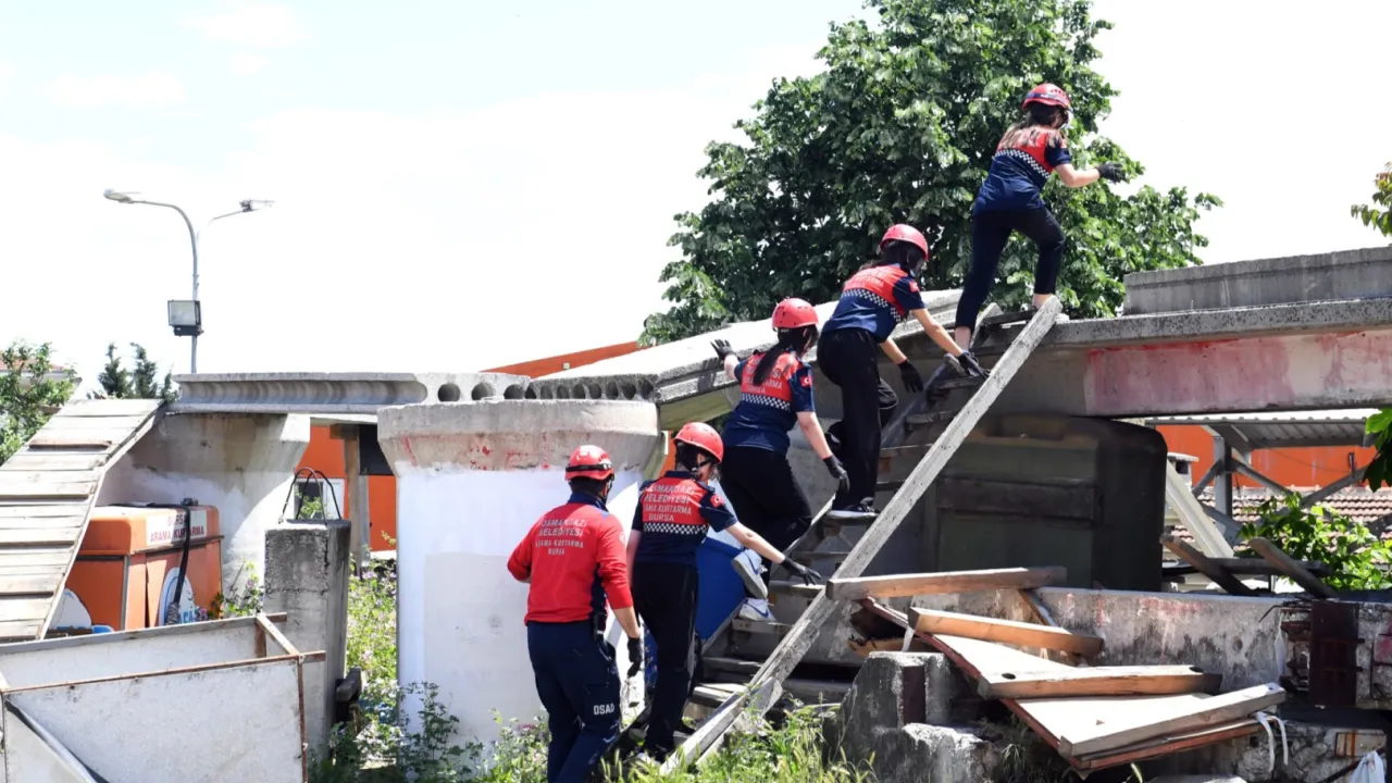 Bursa Osmangazi Belediyesi’nin düzenlediği arama kurtarma tatbikatına katılan liseli öğrenciler, afet anında yaşanabilecek tüm durumlar hakkında eğitim alarak bilgi sahibi oldu.BURSA (İGFA) - Osmangazi Belediyesi Afet İşleri Müdürlüğü ekipleri tarafındanHasan Ali Yücel Anadolu Lisesi öğrencilerine eğitici deprem tatbikatı yaptırıldı.