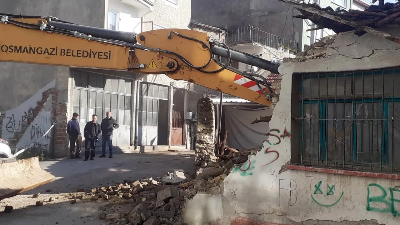 BURSA (İGFA) - Bursa Osmangazi Belediyesi, ilçe genelinde tespiti yapılan ve yasal prosedürleri tamamlanan metruk binaları yıkmaya devam ediyor.