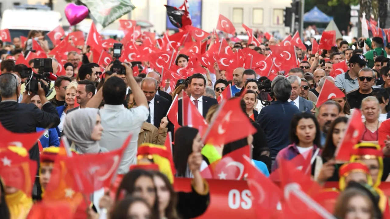 Bursa Osmangazi Belediyesi, 19 Mayıs Atatürk’ü Anma, Gençlik ve Spor Bayramı dolayısıyla binlerce kişinin katılımıyla kortej yürüyüşü düzenledi.BURSA (İGFA) - Bursa Fomara Meydanı’ndan başlayan yürüyüşe katılan coşkulu kalabalık, söylenen marşlar eşliğinde ellerindeki Türk bayraklarını sallayarak Osmangazi Meydanı’na kadar ilerledi.