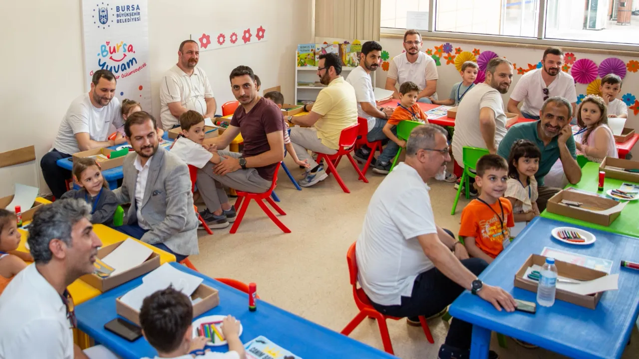 Bursa Büyükşehir Belediyesi’nin ‘Bursa Yuvam Çocuk Eğitim Merkezleri’nde eğitim gören çocuklar, Babalar Günü dolayısıyla düzenlenen etkinlikte babalarıyla birlikte keyifli bir gün geçirdi.BURSA (İGFA) - Bursa Büyükşehir Belediyesi’nin ‘Önce çocuklar gülümseyecek’ teması ile hayata geçirdiği ‘Bursa Yuvam Çocuk Eğitim Merkezleri’nde eğitim gören 4-6 yaş aralığındaki çocuklar, Babalar Günü dolasıyla düzenlenen etkinlikte unutamayacakları bir gün geçirdi. Babalarıyla birlikte çerçeve tasarlayarak resim çizen çocuklar, kendi yaptıkları çalışmaları babalarına hediye etti. Çocuklarıyla birlikte keyifli bir gün geçiren babalar da anlamlı etkinlik için Bursa Büyükşehir Belediyesi’ne teşekkür etti.