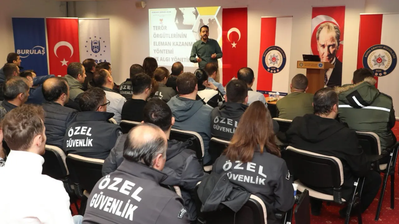 Bursa İl Emniyet Müdürlüğü, "KAAN Uygulaması" kapsamında 352 özel güvenlik görevlisine eğitim verdi.BURSA (İGFA) - Bursa İl Emniyet Müdürlüğü bünyesindeki Özel Güvenlik Şube Müdürlüğü koordinesindeki eğitimde, 352 özel güvenlik görevlisi "KAAN Uygulaması" kapsamında eğitildi.