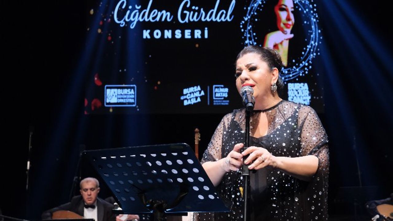 Bursa Büyükşehir Belediyesi Türk Sanat Müziği Bölümü Kadınlar Korosu tarafından düzenlenen konserde, sanatçı Çiğdem Gürdal birbirinden güzel eserleri sanatseverler için seslendirdi.BURSA (İGFA) - Bursa Büyükşehir Belediyesi Orkestra Şube Müdürlüğü Türk Sanat Müziği Bölümü Kadınlar Korosu tarafından Atatürk Kongre Kültür Merkezi’nde düzenlenen konseri, Şef Ayşegül Yüzgeç yönetti.