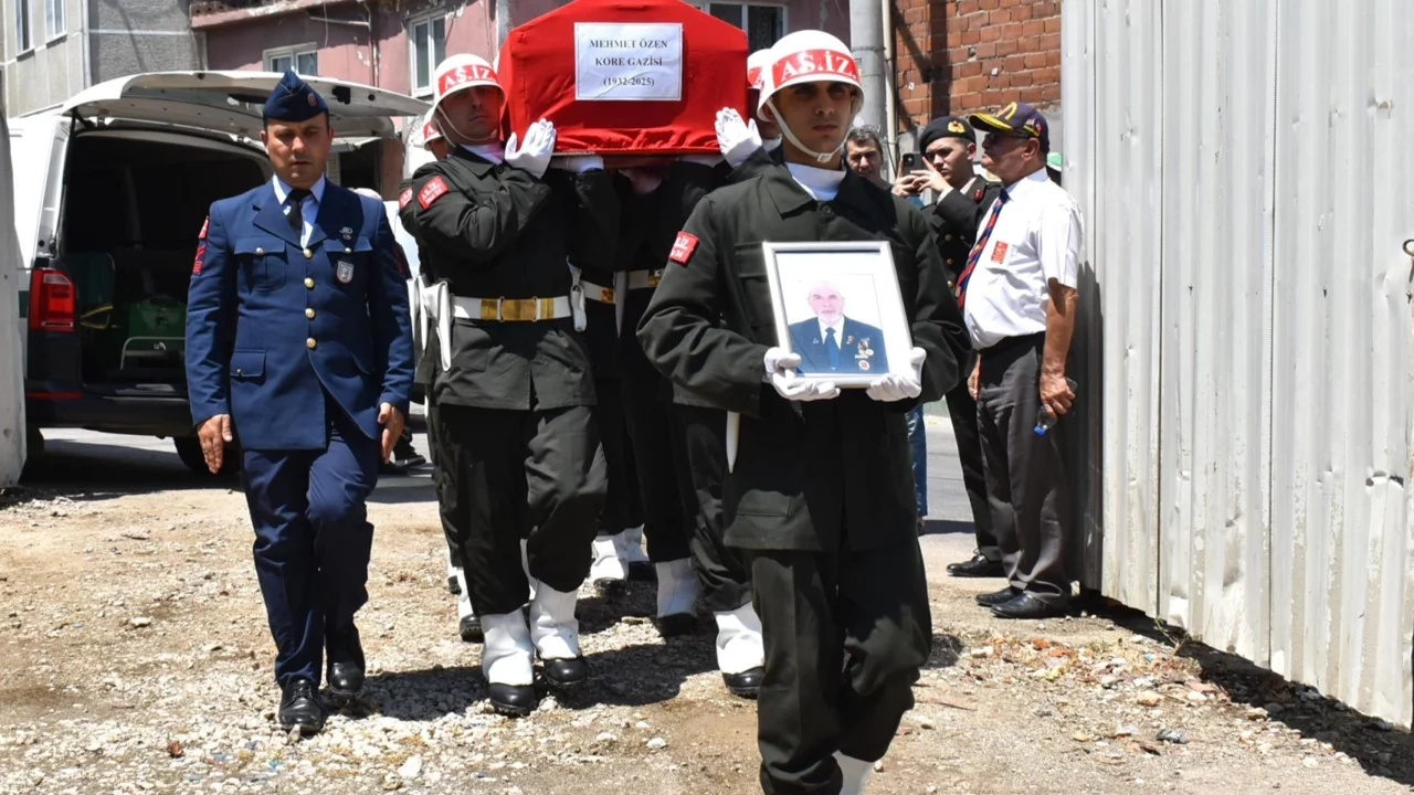 Bursa’nın Osmangazi ilçesinde yaşayan 93 yaşındaki Kore Gazisi Mehmet Özen, Altıkurnalar Camii’nde kılınan cenaze namazının ardından Hamitler Gazi Mezarlığı’nda askeri törenle son yolculuğuna uğurlandı.BURSA (İGFA) - Bursa'nın Osmangazi ilçesinde Koğukçınar Mahallesi’nde ikamet eden Kore Gazisi Mehmet Özen, 93 yaşında hayatını kaybetti.