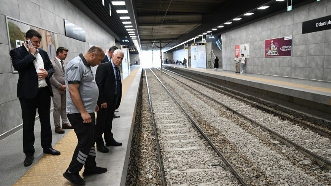 Bursa Büyükşehir Belediye Başkanı Mustafa Bozbey, geçtiğimiz günlerde şehrin batı yakasında etkili olan sağanak yağış sonrası ulaşıma kapanan ve ekiplerin yoğun gayretleri sonucu kısa sürede hizmete açılan BursaRay Odunluk İstasyonu'nda incelemelerde bulundu.BURSA (İGFA) - Bursa’da geçtiğimiz günlerde etkili olan ve metrekareye 44 kilogram yağmurun düştüğü sağanak yağışın ardından BursaRay Odunluk İstasyonu, su birikmesi sonucu ulaşıma kapanmıştı.