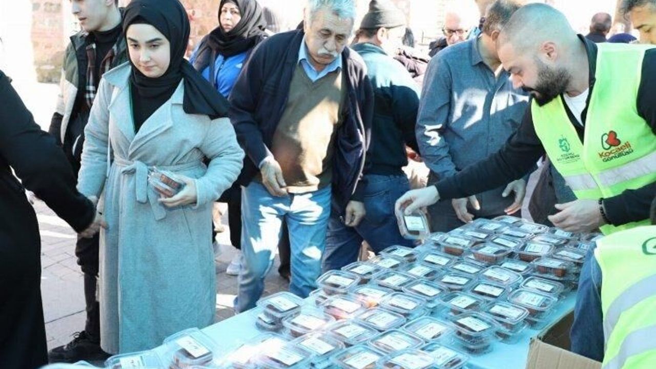 Kocaeli Büyükşehir Belediyesi ekipleri, Miraç Kandili dolayısı ile İzmit’te ve Gebze’de vatandaşlara tatlı ikramında bulundu.KOCAELİ (İGFA) - 6 Şubat akşamı tüm İslam aleminde ve ülkemizde Miraç Kandili olarak idrak ediliyor. Kocaeli Büyükşehir Belediyesi her kandil de olduğu gibi Miraç Kandilinde de vatandaşlara tatlı ikramında bulundu. Sivil Toplum Kuruluşları İle İlişkiler Dairesi Başkanlığı ekipleri, öğlen namazı sonrasında Gebze Kent Meydanı ve İzmit Cumhuriyet Bulvarı’nda Miraç Kandili dolayısıyla 15 bin tulumba tatlısı dağıtımı gerçekleştirdi. Özenle hazırlanan tulumba tatlılarını vatandaşlara ikram eden Kocaeli Gönüllüleri, herkesin kandilini kutladı. Tatlı ikramından dolayı memnuniyetlerini dile getiren vatandaşlar, Kocaeli Büyükşehir Belediyesi’ne teşekkür etti.