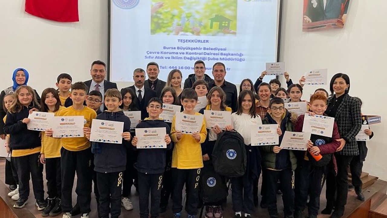 Bursa Büyükşehir Belediyesi ve İl Milli Eğitim Müdürlüğü işbirliğinde, çocuklarda çevre hassasiyetini arttırmak ve gelecek nesillere daha yaşanabilir bir kent bırakmak amacıyla projelendirilen ‘Çevre Okur-Yazarı’ projesinde 1’nci modül tamamlandı. “Sıfır Atık, Geri Dönüşüm ve Atık Azaltımı” konulu proje yarışmasını kazanan öğrenciler, hayvanat bahçesi gezisi ile ödüllendirildi.BURSA (İGFA) - Bursa Büyükşehir Belediyesi’nin, güncel çevre sorunlarına hakim, çevreye duyarlı bir nesil yetişmesi amacıyla başlattığı Çevre Okur-Yazarlığı projesi, eğitim kurumlarında hız kesmeden devam ediyor. İl Milli Eğitim Müdürlüğü iş birliğinde yürütülen proje kapsamında, “sıfır atık, geri dönüşüm ve atık azaltımı, su tasarrufu ve kuraklık, çevre konulu kitap okuma, iklim değişikliği ve küresel ısınma, enerji tasarrufu” konu başlıkları belirlenirken, 50 gönüllü okuldan 1.300 5’inci sınıf öğrencisi seçilmiş ve sorumlu öğretmenler atanmıştı. Okullarda eğitim çalışmalarıyla devam eden projenin birinci modülünü oluşturan ‘Sıfır Atık, Geri Dönüşüm ve Atık Azaltımı’ yarışması tamamlandı. “Geleceğime sahip çıkıyorum, Çevre okur yazarı oluyorum!” temasıyla düzenlenen yarışmanın birincisi Orhangazi Gazi Osmanpaşa Ortaokulu oldu. Nilüfer Şehit Murat Alkan İmam Hatip Ortaokulu ikinci olurken, Nilüfer Vahide Aktuğ Ortaokulu da üçüncülüğü elde etti.