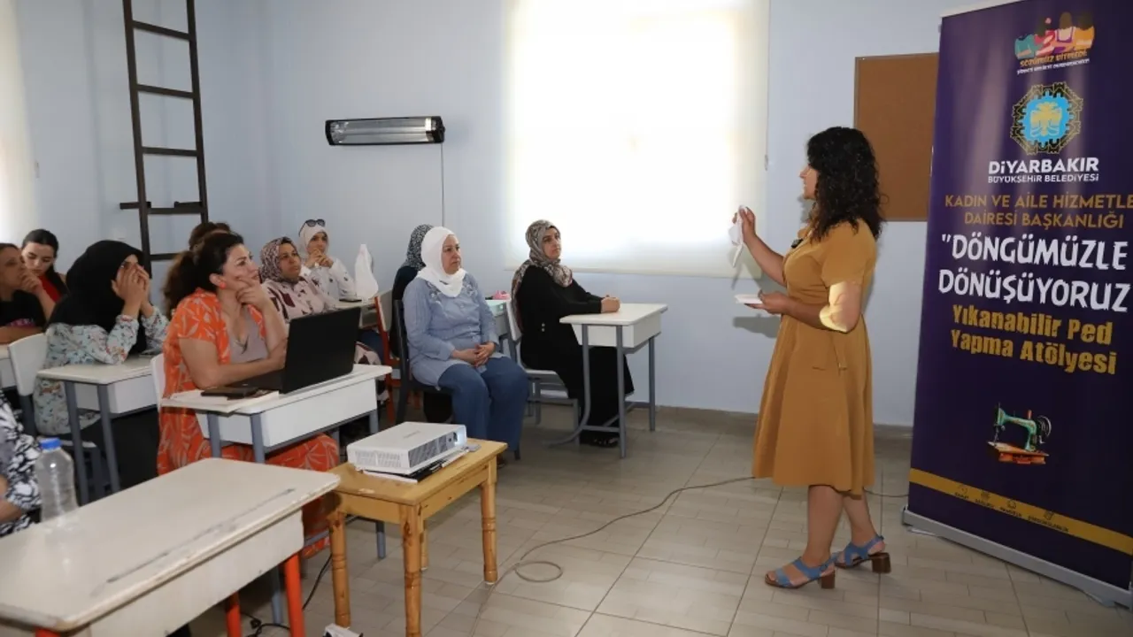Atölye çalışmalarına ilişkin bilgi veren eğitmen Sevda Kayar Görer, kolektif bir çalışma ve dayanışma yürüteceklerini belirterek, “Ocak ayı itibariyle ‘Döngümüzle Dönüşüyoruz’ kampanyasını başlattık. Yıkanabilir ped atölyesinin açılışını gerçekleştirmekle beraber yaygınlaştırmak gibi bir hedefimiz de vardı. Bu çalışmada Ben û Sen Semti’ni pilot bölge olarak seçtik. İki atölyemizi burada yaptık. Ben û Sen’den sonra Bağlar Yeniköy, Kayapınar Kuçe ve Sur Lalebey Kadın Yaşam Merkezi ile beraber programlarımız devam etti” dedi.