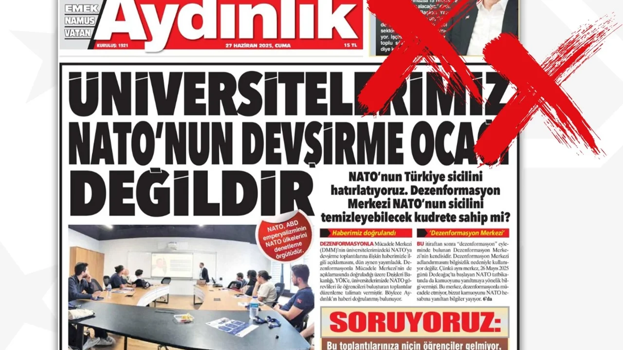 Dezenformasyonla Mücadele Merkezi (DMM), Aydınlık gazetesinde yayımlanan “NATO karargâhından yönetilen Dezenformasyon Merkezi” başlıklı habere ilişkin kamuoyunu bilgilendirme açıklaması yayımladı.ANKARA (İGFA) - DMM’nin Türkiye Cumhuriyeti Devleti'nin milli menfaatleri doğrultusunda, ulusal güvenlik ve kamu düzeni aleyhine yürütülen dezenformasyon kampanyalarıyla mücadele görevini yürüttüğü vurgulandı.