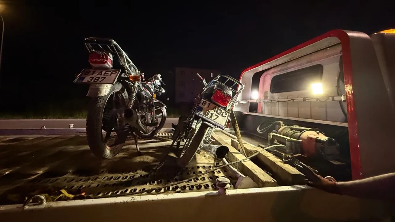 Yapılan kontrollerde sürücülerin ehliyetsiz olduğu, kask takmadığı, motosikletlerde usulsüz ışıklar ve uygun olmayan aparatlar bulunduğu tespit edildi.