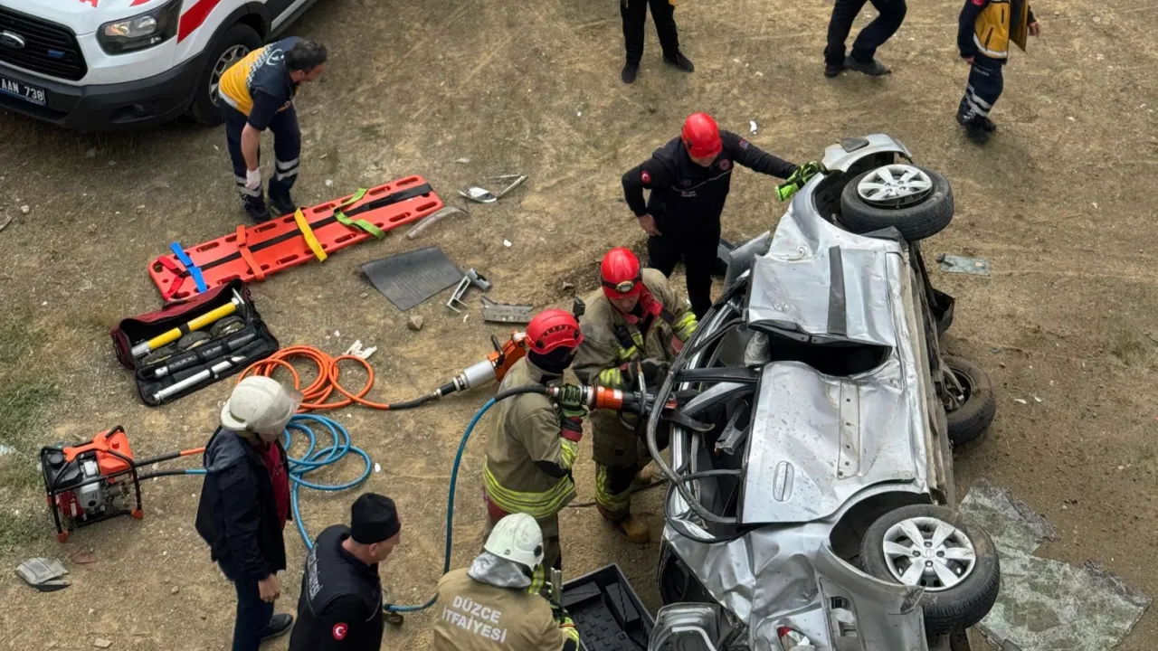 İtfaiye ekipleri, aracın tavanını keserek yaralıları kurtardı. Sağlık ekiplerinin ilk müdahalesinin ardından hastaneye kaldırılan sürücü ve yolcunun durumunun ağır olduğu belirtildi.