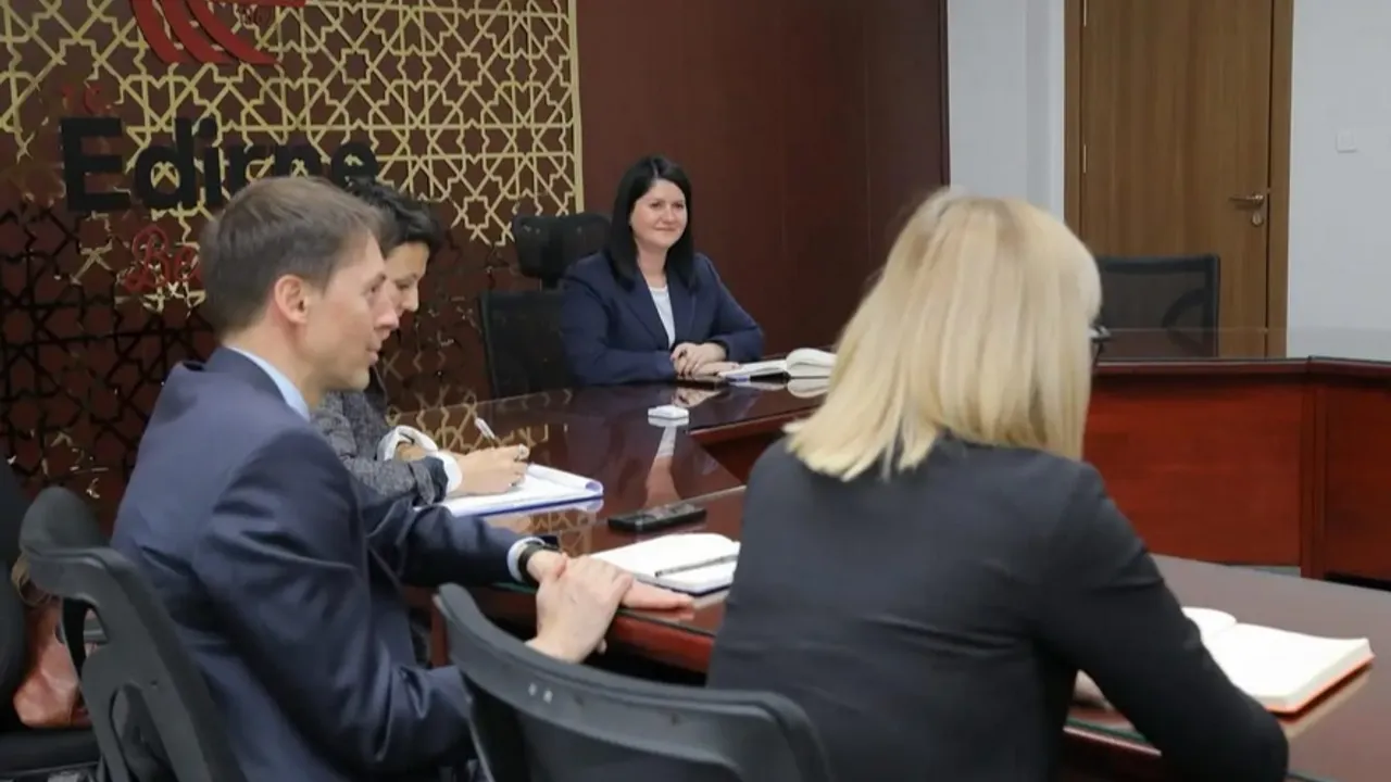 Edirne Belediyesi, Avrupa Birliği (AB) Türkiye Delegasyonu Başkan Yardımcısı Jurgis Vilcinskas ve AB üyesi ülkelerin Türkiye’deki Büyükelçilik Misyon Şefi Yardımcılarından oluşan heyeti ağırladı.Erdoğan DEMİR / EDİRNE (İGFA) - Edirne Belediye Başkanı Av. Filiz Gencan Akın, toplantıda Edirne’nin zengin tarihi, kültürel çeşitliliği ve Avrupa ile olan tarihi bağları aktardı.