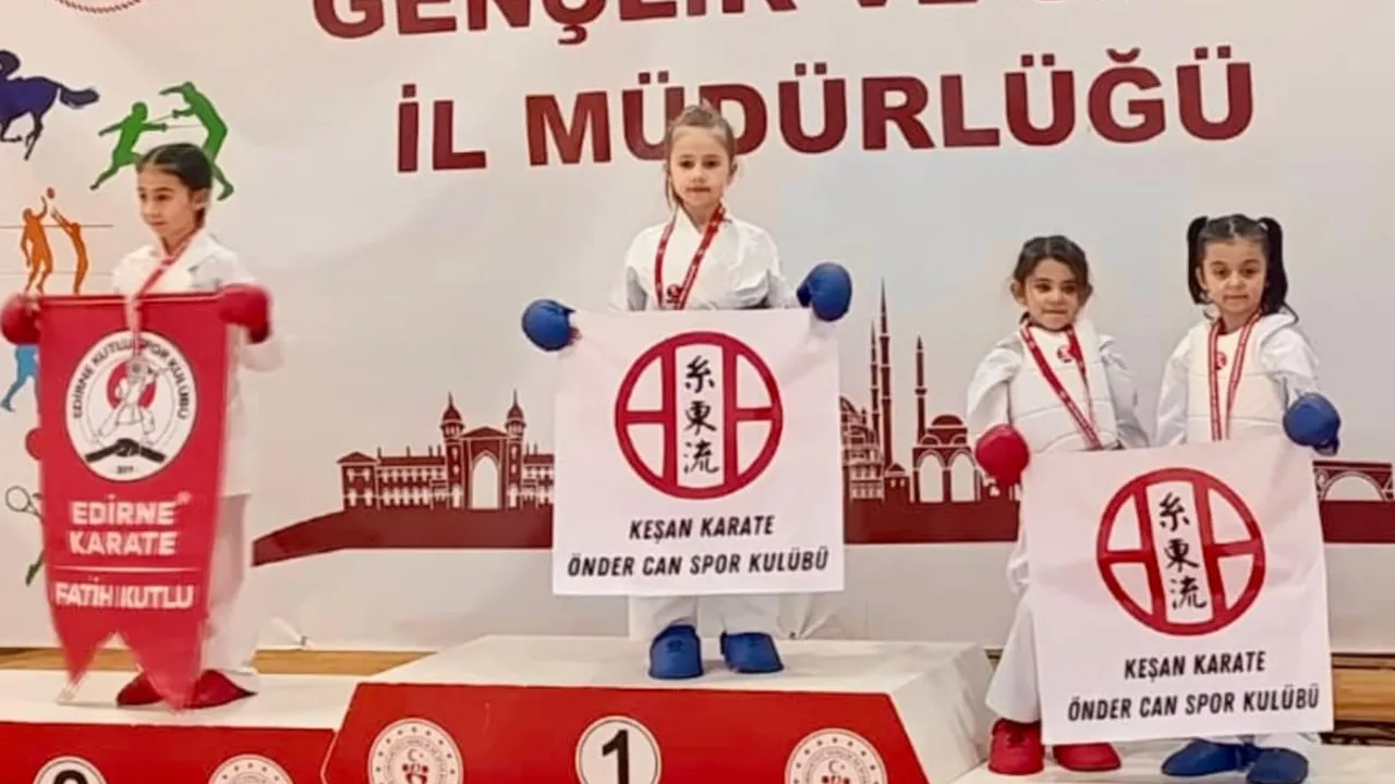 Edirne’de düzenlenen Karate İl Şampiyonası’nda, kulüp antrenörleri Hamdi Çevik ve Meltem Şahin öncülüğünde yarışan minik, yıldız, ümit ve genç kategorilerindeki sporcular, şampiyonada büyük bir başarı elde etti.