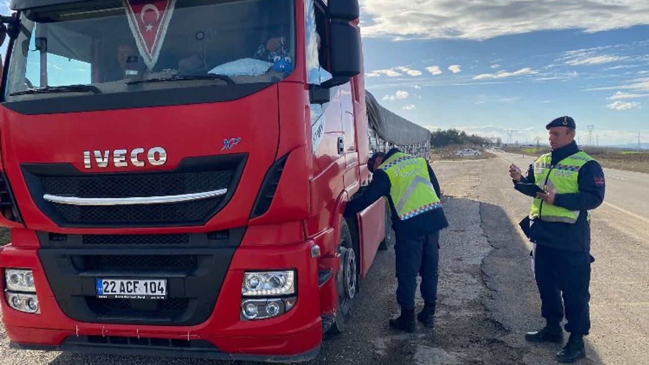 Edirne Keşan’da trafik ekipleri tarafından kış lastiği kullanmayan 10 sürücüye ceza yazıldı.Erdoğan DEMİR / EDİRNE (İGFA) - Edirne İl Jandarma Komutanlığı Trafik Jandarması ekipleri, güvenli bir trafik akışı ve sıfır kaza düsturuyla meydana gelen can ve mal kayıplarının önlenmesi amacıyla denetimlerini sürdürüyor. Bu kapsamda, Keşan ilçesi Keşan-Enez yolu mevkii sabit trafik kontrolünde yolcu ve eşya taşıyan araçların kış lastiği denetimi yapıldı.