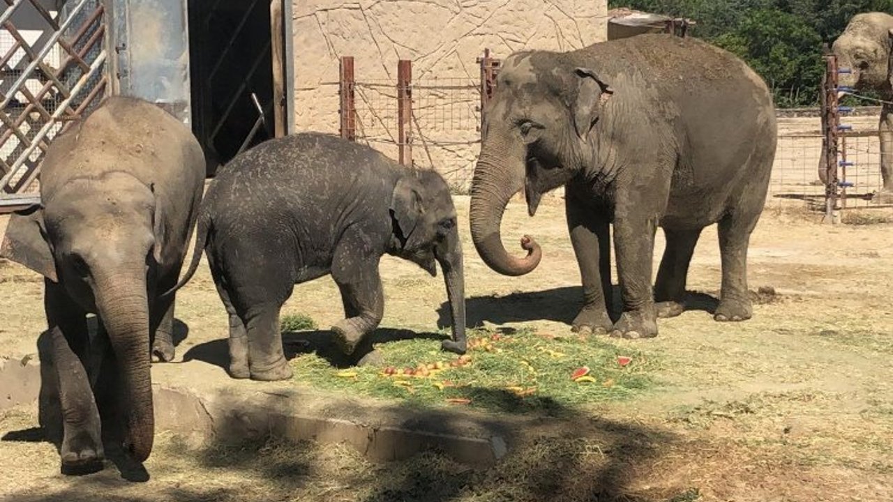 Türkiye'nin tek fil ailesine ev sahipliği yapan İzmir Doğal Yaşam Parkı'nda doğum günü kutlaması yapıldı Begümcan ve Winner'ın çocukları Ege fil 3 yaşına bastı