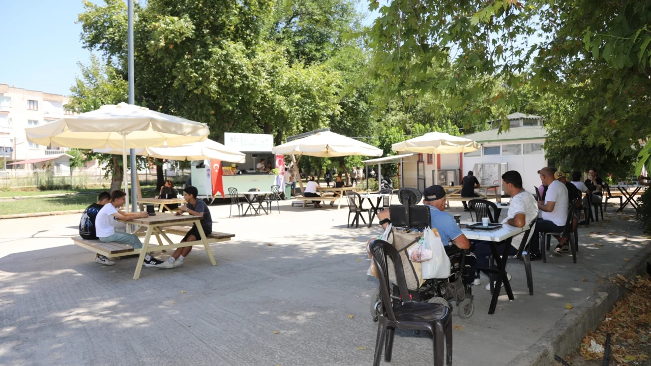 Aslanlı havuz yanında bulunan Engelsiz Yaşam Merkezi bahçesinde karavan kafe olarak hizmet veren Engelsiz Kafe’de uygun fiyat politikasıyla soğuk ve sıcak içecekler, tatlı ve tuzlu ikramlıklar da bulunuyor. Kafede, tüm çalışma kadrosu engel tanımayan gençlerden oluşuyor. Burada, engel tanımayan gençler çalışırken sosyalleşmenin keyfini çıkarıyor.