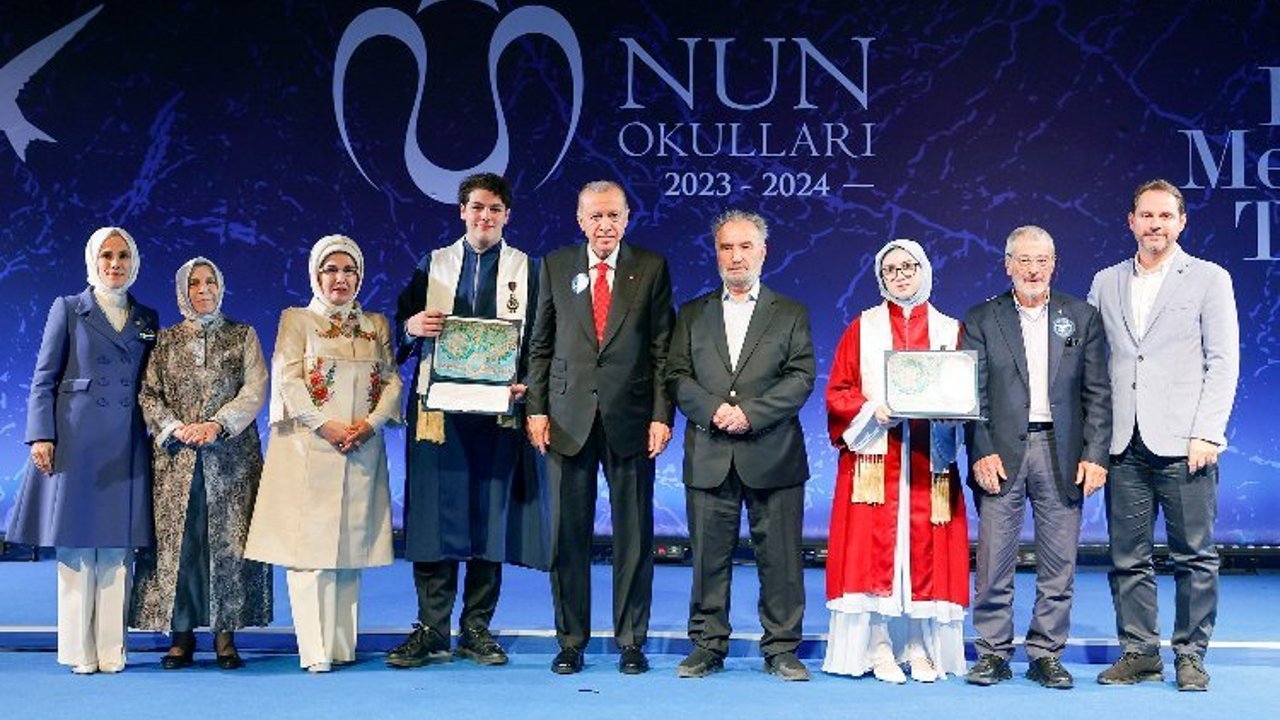 Cumhurbaşkanı Recep Tayyip Erdoğan, NUN Okullarının 4. Mezuniyet Töreni'nde, torunu Ahmet Akif'in de aralarında bulunduğu öğrencilerin sevincine ortak oldu.ANKARA (İGFA) - 2023-2024 eğitim öğretim dönemini başarıyla geride bırakan NUN Okulları'nda mezuniyet sevinci yaşandı.