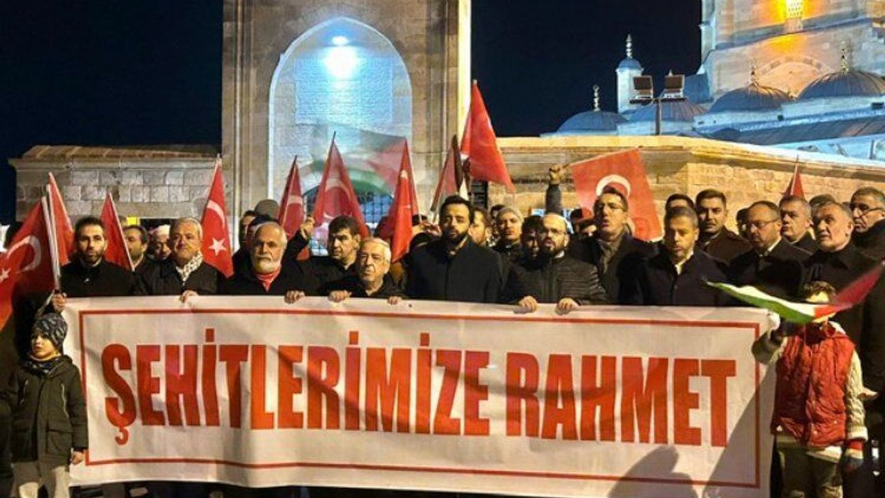 Cami çıkışında ellerinde Türk ve Filistin bayrakları taşıyan grup İsrail ve terör örgütleri aleyhine slogan attı.