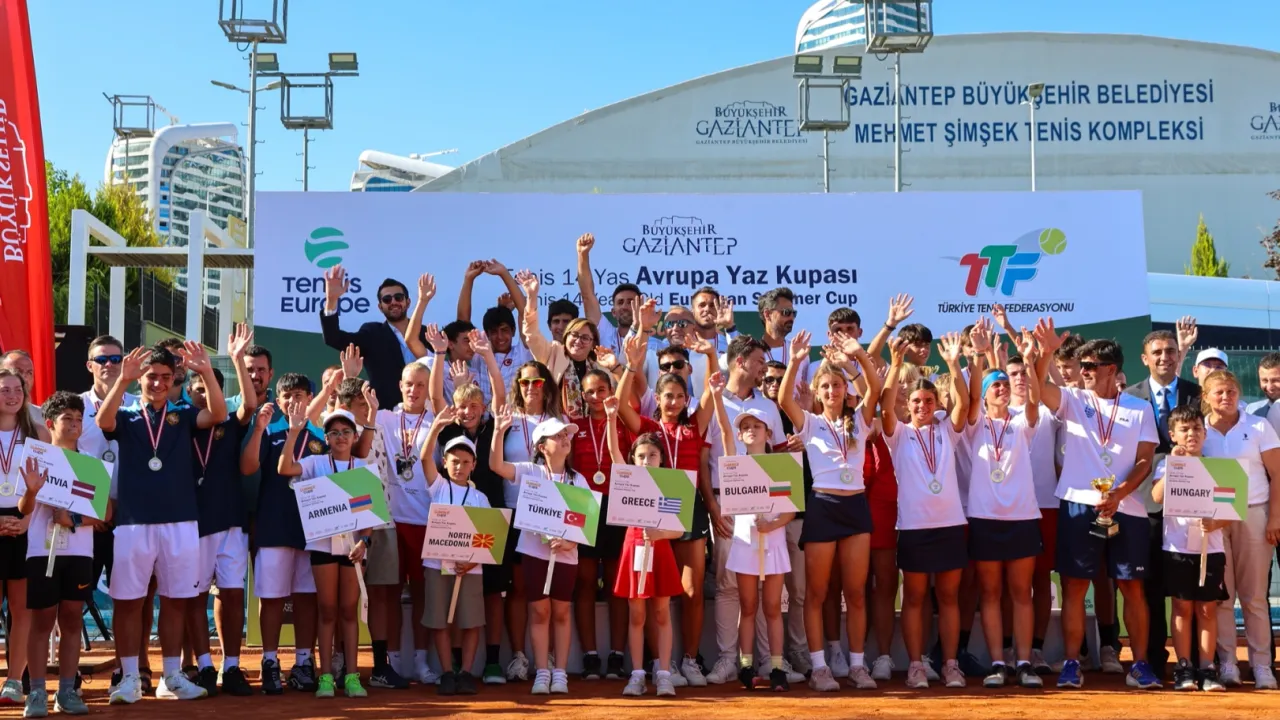 Gaziantep Büyükşehir Belediyesi ve Türkiye Tenis Federasyonu iş birliğinde, Tennis Europe çatısı altında düzenlenen Uluslararası Tenis 14 Yaş Avrupa Yaz Kupası Elemeleri tamamlandı.GAZİANTEP (İGFA) - Bulgaristan, Yunanistan, Macaristan, Kuzey Makedonya, Ermenistan, Hırvatistan, Letonya ve Türkiye’den sporcuların yer aldığı turnuvada Türkiye Milli Takımı birinci, Yunanistan ikinci oldu.