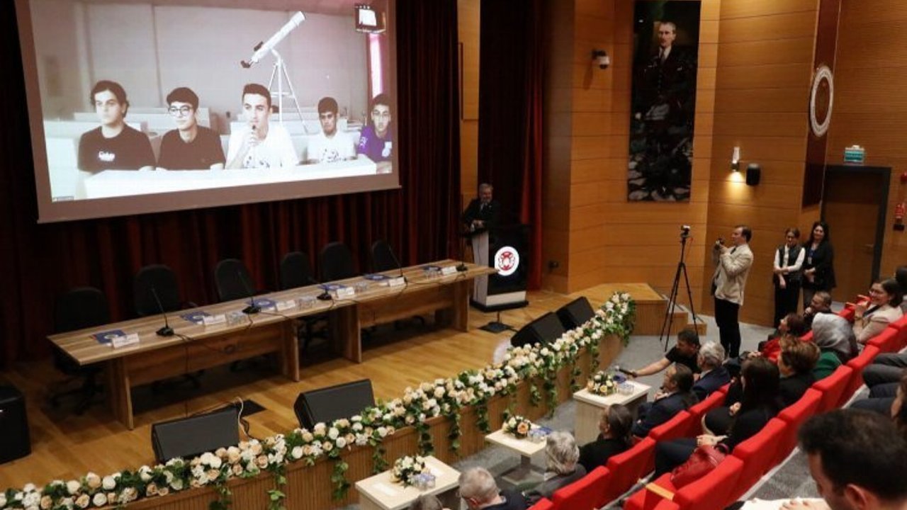 Programa sınıflarından, CERN’ün ödül olarak takdim ettiği teleskop önünden bağlanan Red Apple Takımı üyesi öğrenciler de başarılarından ve hedeflerinden bahsetti.