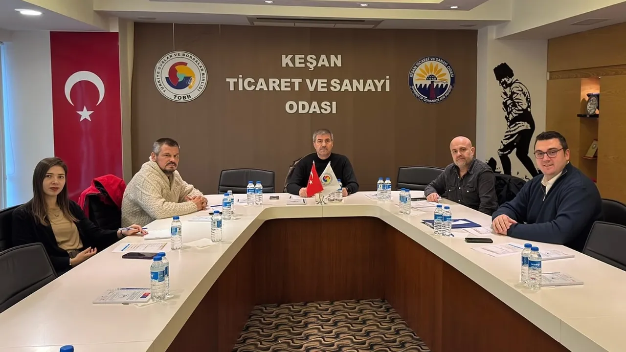 Toplantıya, Keşan TSO Yönetim Kurulu Üyesi Mustafa Anbarcı, Meclis Üyeleri Onur Güven ve Tayfun Korucu, Genel Sekreter Yardımcısı Kadir Can Tunç ile Proje Sorumlusu Mehtap Pelin Konar katıldı.