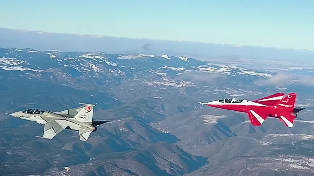 Türk Havacılık Uzay Sanayi, iki Hürjet'in aynı anda gökyüzünde olduğu an'a ilişkin görüntüleri paylaştı.ANKARA (İGFA) - Hava Kuvvetleri Komutanı Orgeneral Ziya Cemal Kadıoğlu, İspanya Hava Kuvvetleri Komutanı Orgeneral Francisco Braco Carbo ile birlikte kol uçuşu gerçekleştirdi.