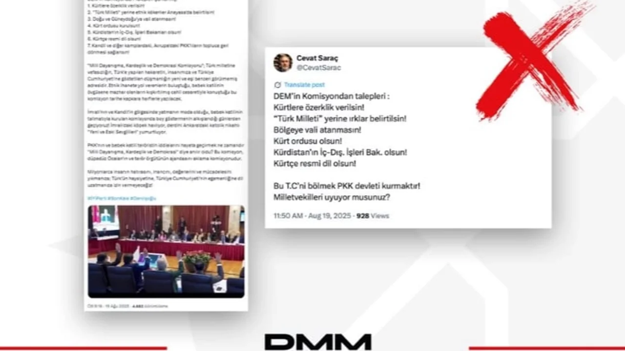 İletişim Başkanlığı, Milli Dayanışma, Kardeşlik ve Demokrasi Komisyonu hakkında sosyal medyada ortaya atılan iddiaları yalanladı. Komisyonun, 11 siyasi partiden 51 üyenin katılımıyla milli birlik ve toplumsal barışı güçlendirme hedefiyle çalıştığı belirtildi.ANKARA (İGFA) - İletişim Başkanlığı, bazı sosyal medya platformlarında, bir siyasi partinin TBMM bünyesinde kurulan Milli Dayanışma, Kardeşlik ve Demokrasi Komisyonu’nda Türkiye’nin egemenliğini ve milli birliğini hedef alan taleplerde bulunduğu yönündeki paylaşımların asılsız olduğunu duyurdu.