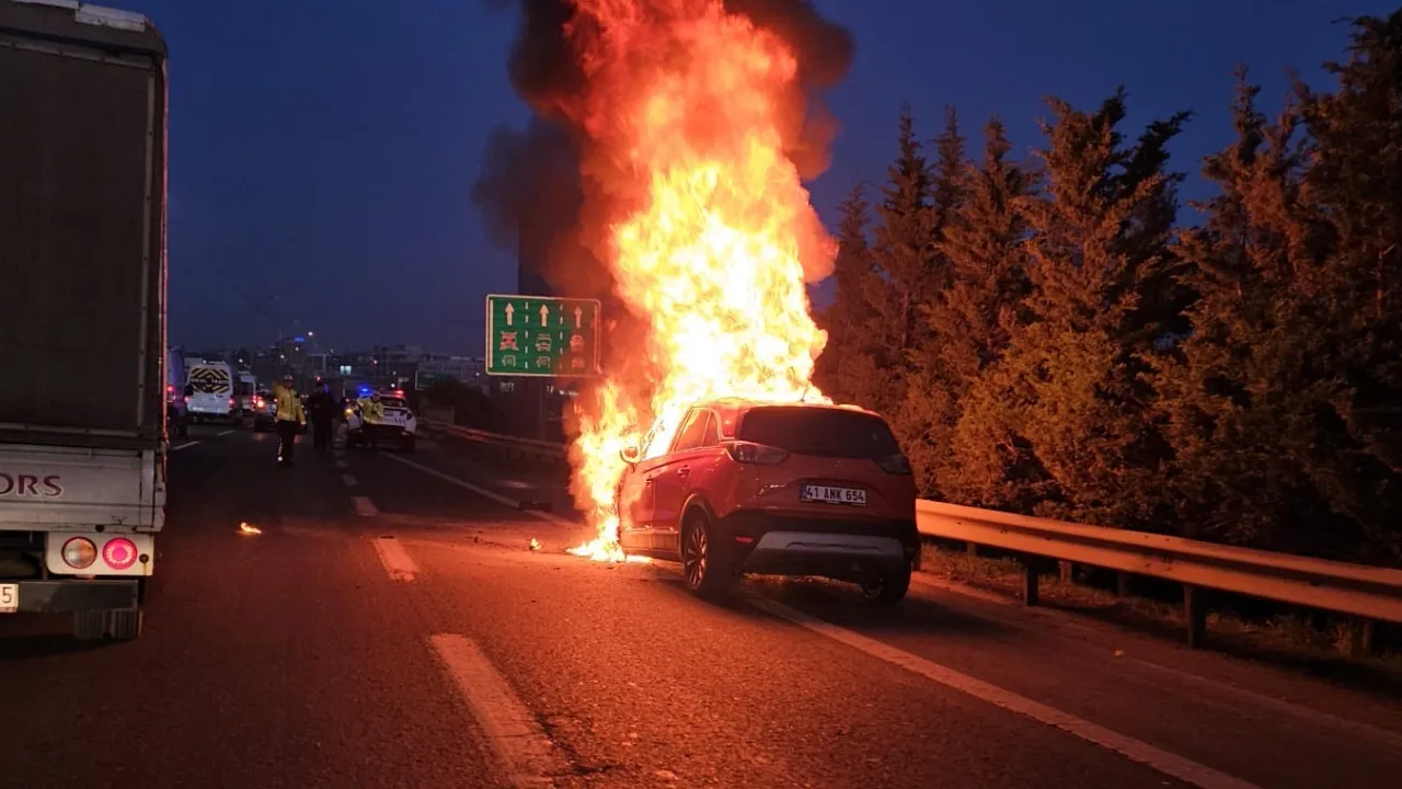 İstanbul TEM Otoyolu Sultanbeyli mevkiinde seyir halinde olan araç alev aldı.Metin Yıldız / DÜZCE (İGFA) - Alınan bilgiye göre sabah saatlerinde İstanbul TEM Otoyolu Sultanbeyli mevkiinde İstanbul istikametinde seyreden 41 ANK 654 plakalı otomobilde, sebebi bilinmeyen nedenle yangın çıktı. Durumu fark eden sürücü, otomobili hemen sağa çekerek otomobilden indi.