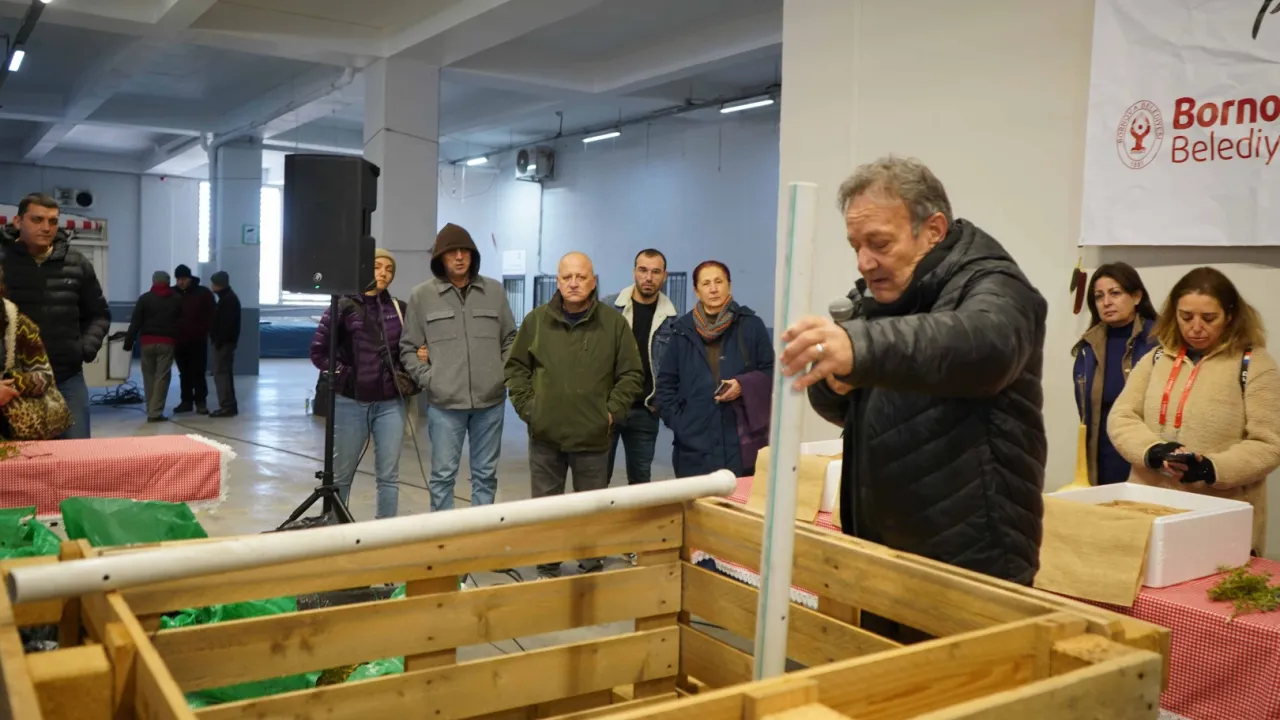 İzmir'de Bornova Belediyesi Tarımsal Hizmetler Müdürlüğü, Ekolojik Kent Yerel Tohum Merkezi ve Birlik ve Dayanışma Bahçeleri İzmir Toprak Ana Grubu iş birliğiyle düzenlenen etkinlikte, kompost gübre eğitimi verildi ve atalık tohum dağıtımı gerçekleştirildi.İZMİR (İGFA) - Ziraat Mühendisi Mehmet Pakkaner tarafından verilen Johnson Su Kompost Bioreaktörü Eğitimi, kompost gübre yapımında farklı ve verimli bir yöntemi tanıttı. Eğitimin ardından katılımcılar, toprağın verimini artıran bu yeni kompost yöntemi hakkında detaylı bilgi edinerek kendi üretim süreçlerine nasıl dahil edebileceklerini öğrendi.