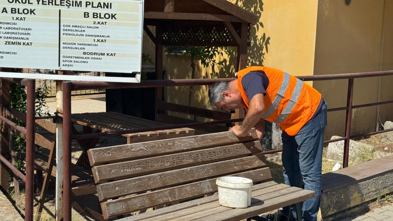 Yeni eğitim-öğretim yılına sayılı günler kala Çiğli Belediyesi, ilçedeki okullarda hummalı bir çalışma başlatarak öğrencilerin daha sağlıklı, güvenli ve temiz ortamlarda eğitim alabilmesi için seferber oldu. Ekipler, çocukların okul bahçelerinde keyifle vakit geçirebileceği ortam oluşturmak için sahada çalışıyor.İZMİR (İGFA) - İzmir'de Çiğli Belediyesi’nden okullara yeni dönem öncesi kapsamlı destek geldi. Çalışmalar kapsamında ağaçlar budanıkren, otlar biçildi ve okul bahçelerindeki ot temizliği gerçekleştirildi. Ayrıca öğrencilerin dinlenme alanı olarak kullandığı bankların bakım ve onarımları yapıldı. Öğrencilerin dinlenme alanı olarak kullandığı banklar da tamir edildi.