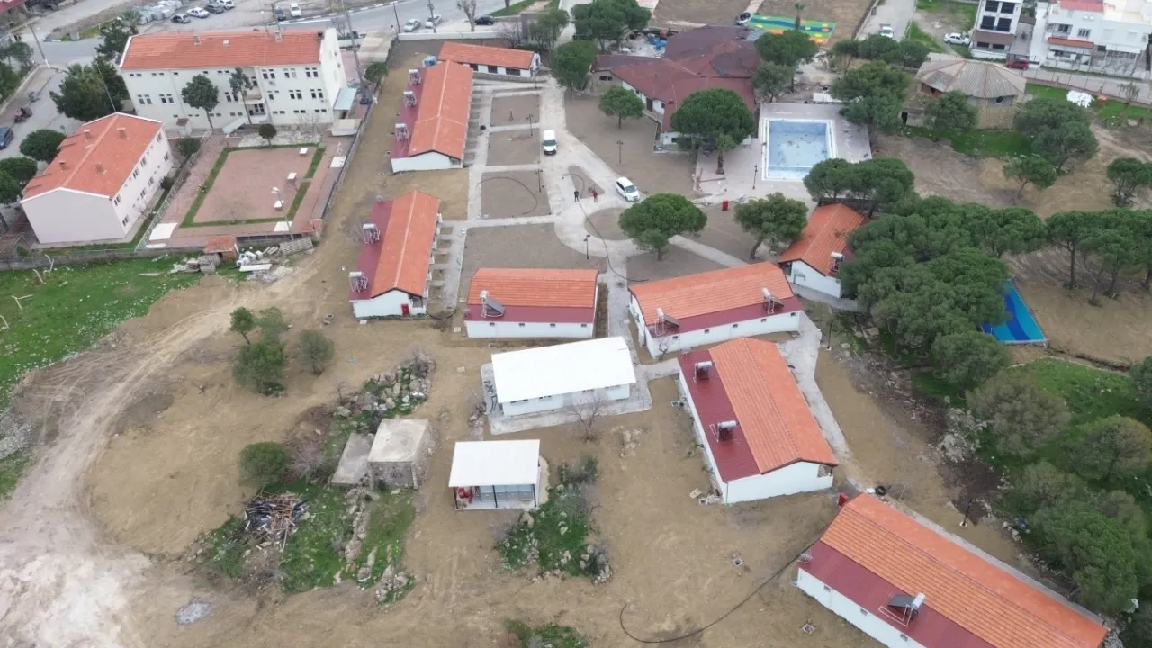İzmir Büyükşehir Belediyesi, Dikili Belediyesi’nden devraldığı Çandarlı Sosyal Tesisi’nde yenileme çalışmalarında sona yaklaştı. 78 yatak kapasiteli 39 motelden oluşan tesisin ilkbaharda tamamlanması planlanıyor.İZMİR (İGFA) - İzmir Büyükşehir Belediyesi, Dikili Belediyesi’nden devraldığı Çandarlı Sosyal Tesisi’ni yeniden İzmir turizmine kazandırmaya hazırlanıyor. Atıl durumda olan tesisin restorasyonunda son aşamaya gelindi. İzmir Büyükşehir Belediye Başkanı Dr. Cemil Tugay Dikili Belediye Başkanı Adil Kırgöz ile çalışmaları yerinde inceleyerek düzenlemeler hakkında bilgi aldı.