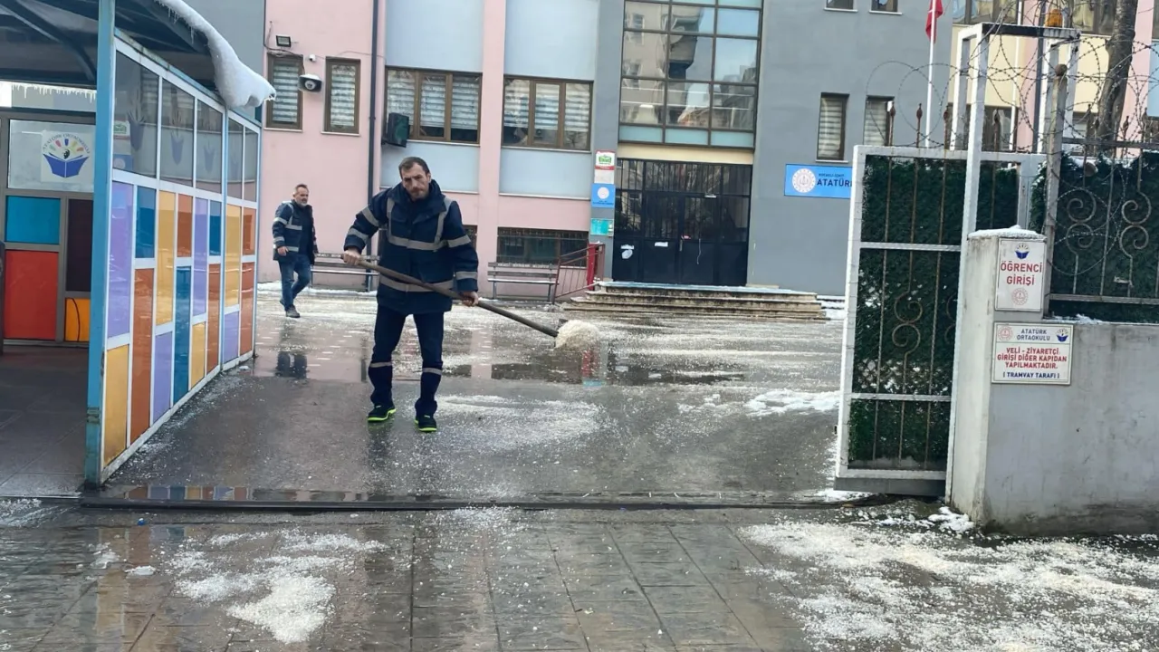 Ekipler çalışmalar kapsamında bugün Milli Savunma Üniversitesi (MSÜ) Askeri Öğrenci Aday Belirleme Sınavının olduğu okullarda da herhangi bir olumsuzluk yaşanmaması adına kar küreme ve tuzlama çalışması yaptı.