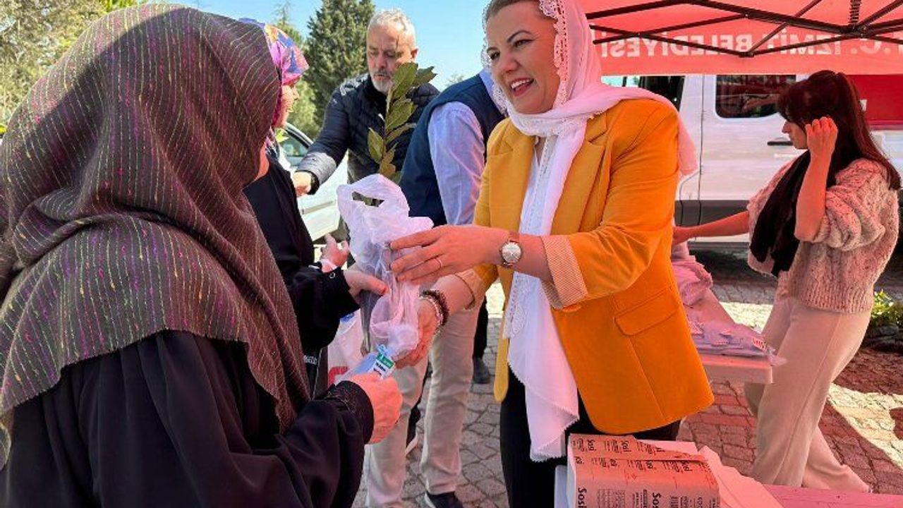 Kocaeli İzmit Belediye Başkanı Fatma Kaplan Hürriyet, Ramazan Bayramı arifesinde kabristan ziyareti yapan vatandaşlara defne fidanı ve cüz dağıtarak vatandaşların bayramlarını kutladıKOCAELİ (İGFA) - Kocaeli İzmit Belediyesi, Ramazan Bayramı arifesinde kabristan ziyareti yapan vatandaşlara defne fidanı ve cüz dağıttı. Kent Mezarlığı’nda kurulan stantta vatandaşlarla bir araya gelen Başkan Hürriyet, yakınlarının mezarını ziyaret edenlere baş sağlığı dileyerek vatandaşların Ramazan Bayramı’nı kutladı. Kabristanlık girişinde fidan ve cüzlerini alan vatandaşlar da Başkan Hürriyet’e teşekkürlerini sundu.