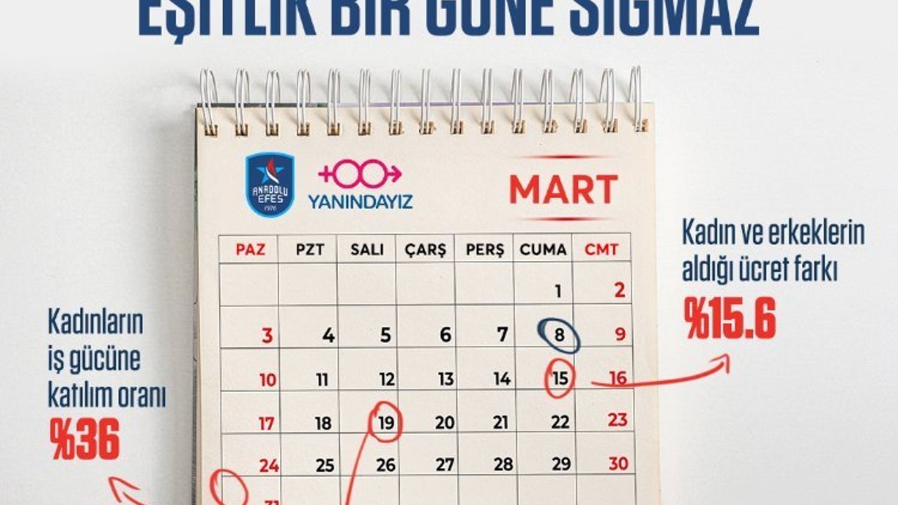 Anadolu Efes oyuncularından; Rodrigue Beaubois, Tibor Pleiss, Elijah Bryant, Doğuş Özdemiroğlu, Erkan Yılmaz, Derek Willis, Melih Tunca ve Koç Tomislav Mijatovic, etkili mesajları ile toplumsal cinsiyet eşitliği sorunu için herkesi harekete geçmeye davet edecek.