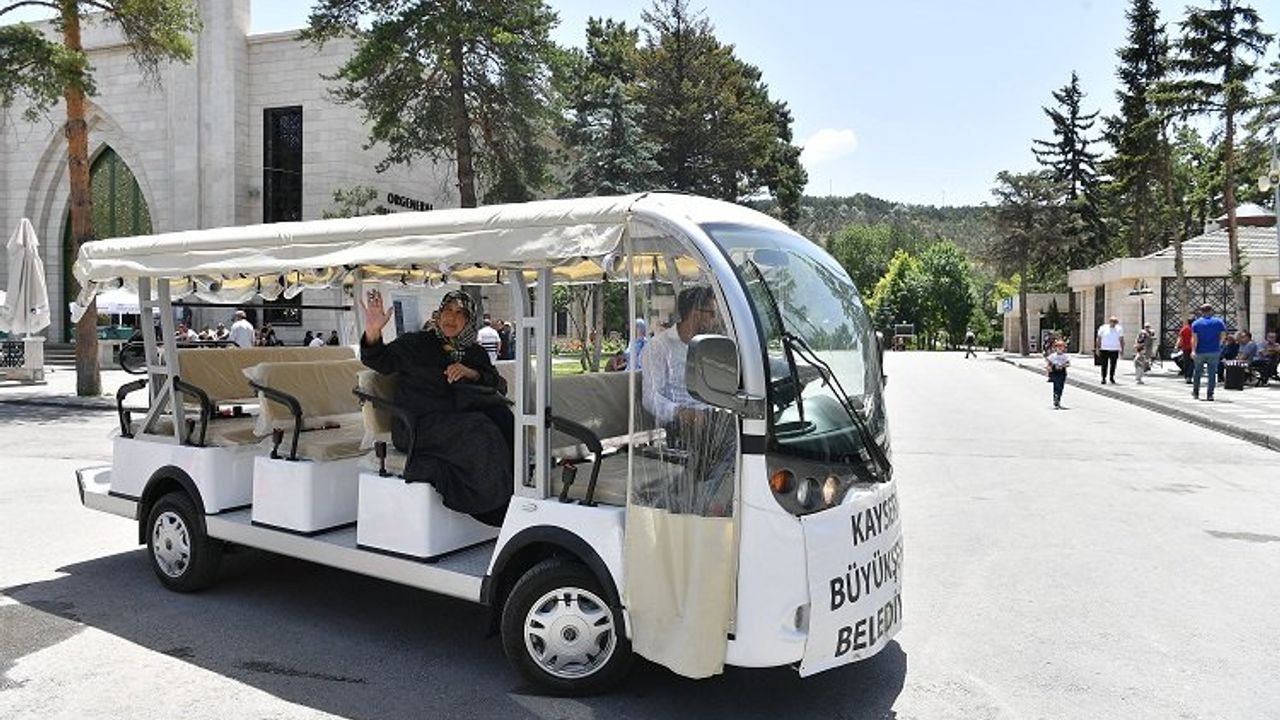 Kayseri Büyükşehir Belediyesi, bayramlarda ziyaretçi akınına uğrayan mezarlıklarda hizmetini sürdürüyor. Bu kapsamda Büyükşehir Belediyesi, çok büyük alana sahip Kayseri Şehir Mezarlığı’nda araçlarla kabirlere ulaşım hizmeti sağladı. Hizmetten memnuniyetini dile getiren vatandaşlar ise hem teşekkür, hem de dua etti. Mehmet UZEL / KAYSERİ (İGFA) - Kurban Bayramı arifesinde vefat eden yakınlarını Şehir Mezarlığı’nda ziyaret ederek dua etmeye gelen vatandaşlara, sıcak yaz gününde mezarlık içerisinde ulaşım hizmeti sunan Kayseri Büyükşehir Belediyesi, shuttle elektrikli golf araçları ve diğer taşıtlarla engelli ve yaşlı ziyaretçi vatandaşlara ulaşım hizmeti verdi.